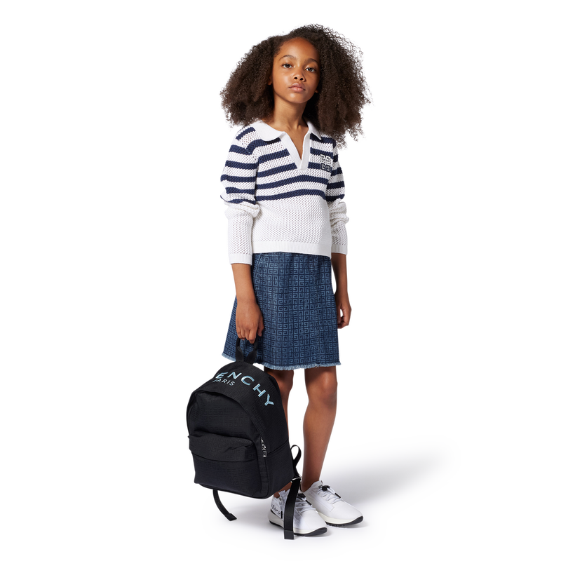 This Givenchy denim skirt adds a trendy touch to everyday outfits with its all-over 4G print. For an extra touch of originality, it features fringes at the hem. Signature Givenchy embroidery is featured on the front.