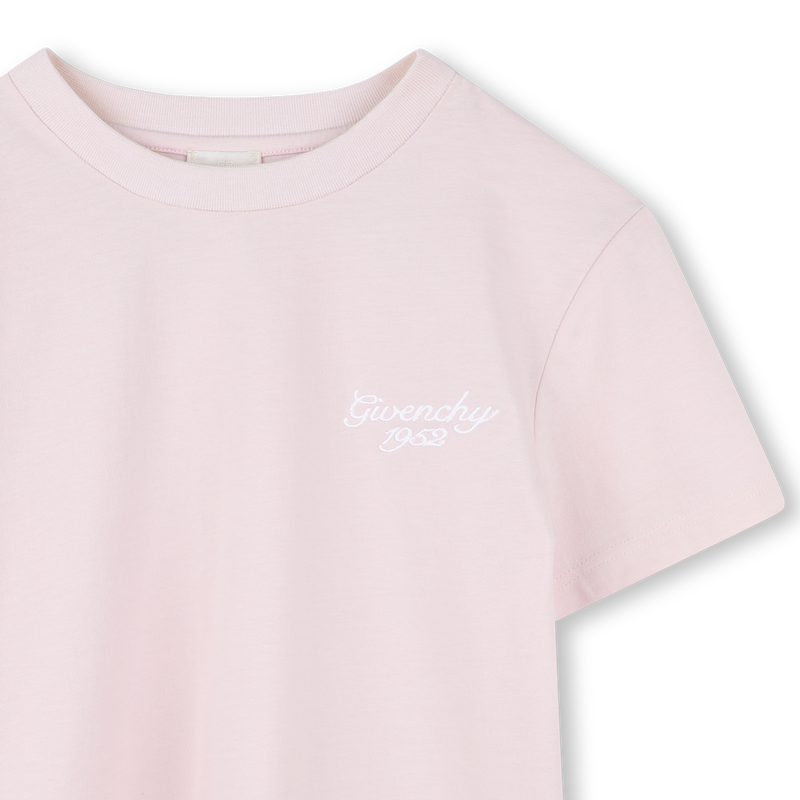 Inspired by the adult collection, this Givenchy T-shirt is perfect for everyday wear. The signature Givenchy 1952 embroidery adorns the chest. The lower back features the centered 4G logo. This style contains organic cotton.