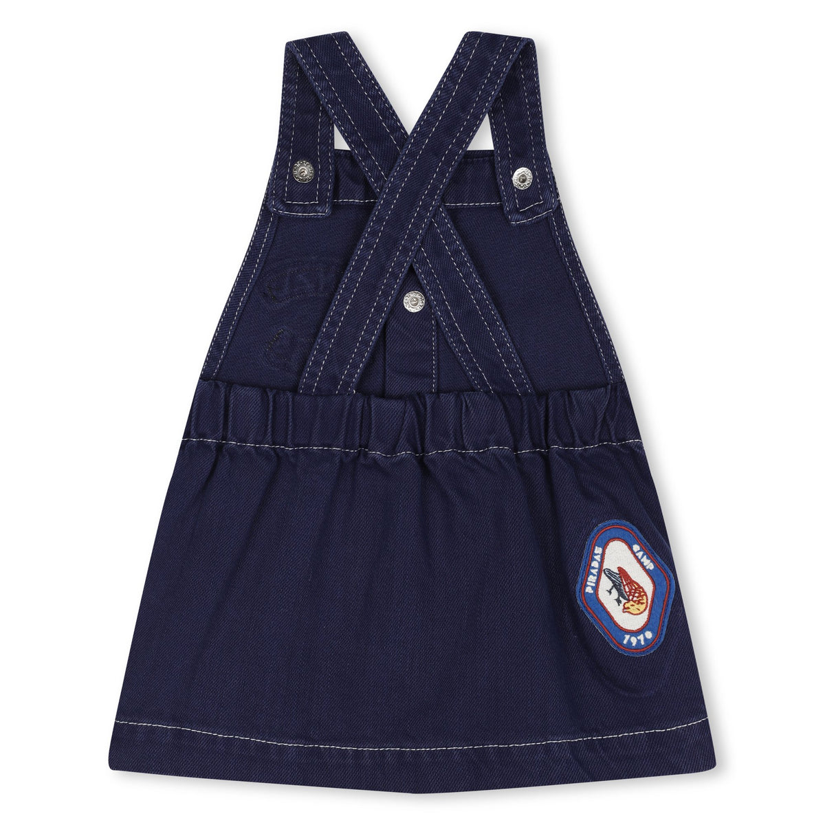 Perfect for everyday wear, this KENZO Kids pinafore dress features embroidered badges on the front and back. It has a press stud fastener on the front and two pockets. It is made of 100% cotton.