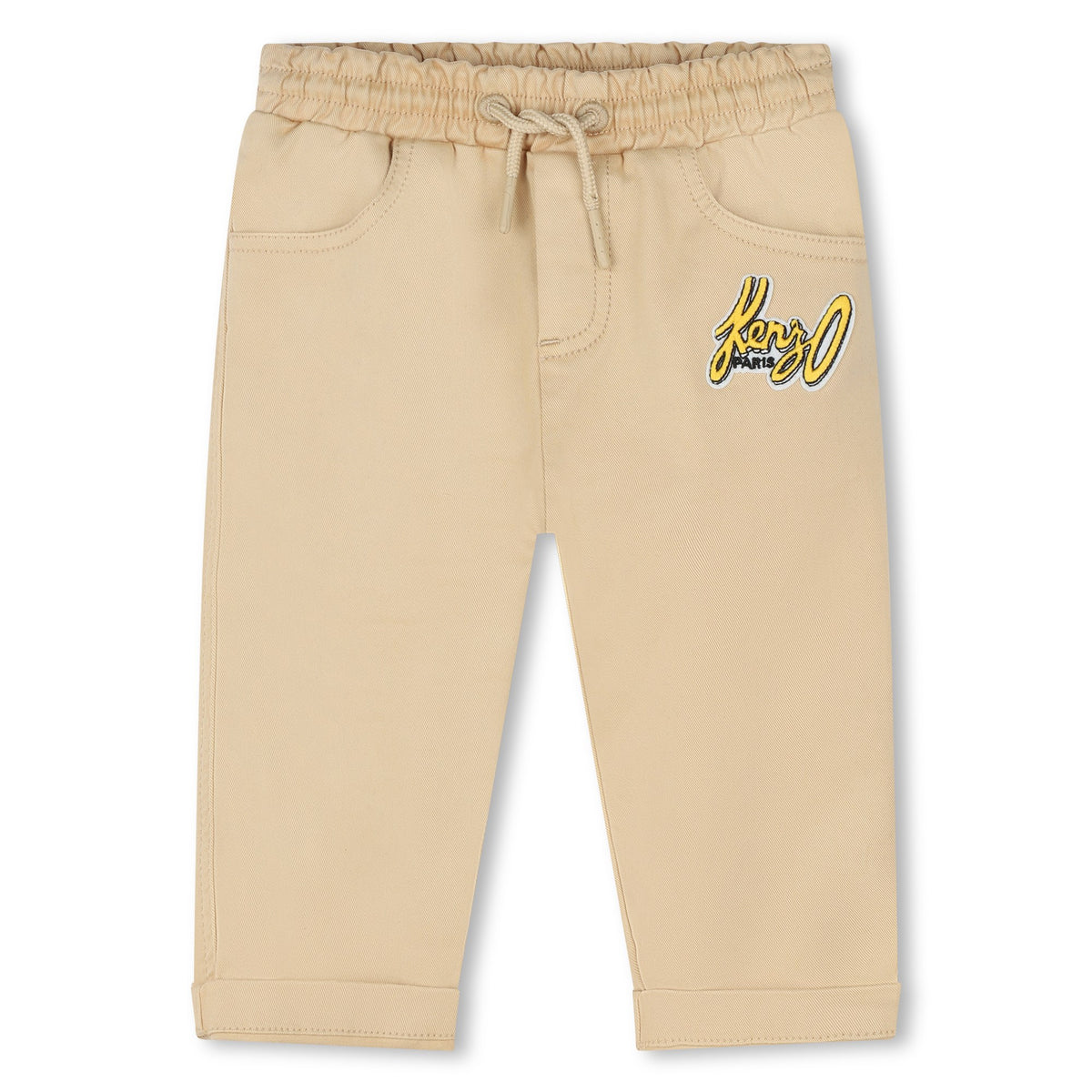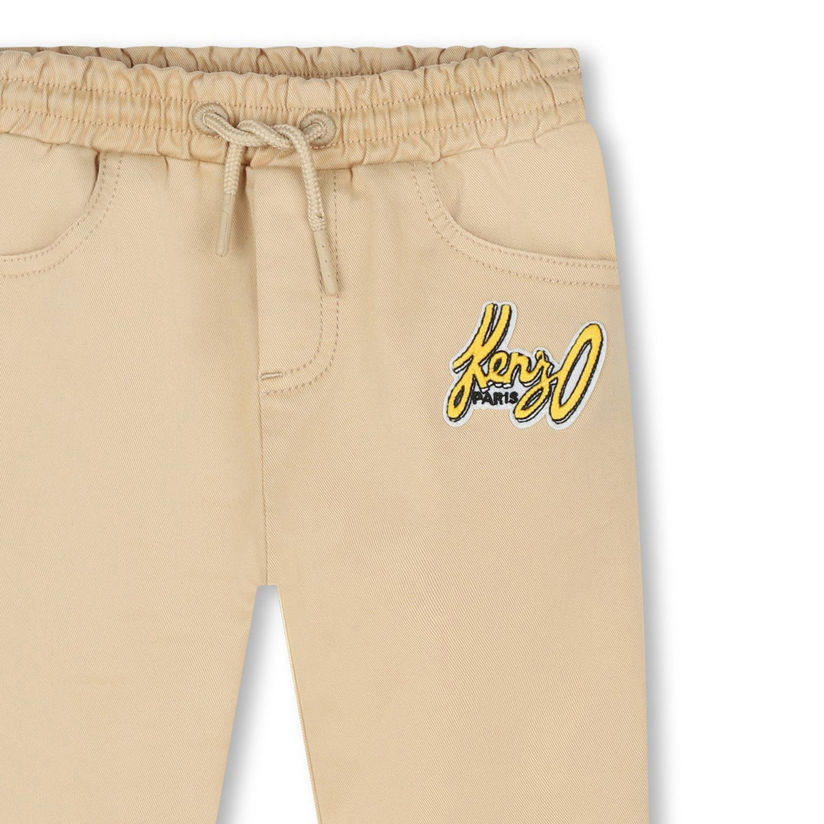 These KENZO Kids trousers combine comfort and elegance. They feature an elasticated waist with drawstrings, two front pockets and one patch pocket on the back. They are made from 97% cotton and 3% elastane.