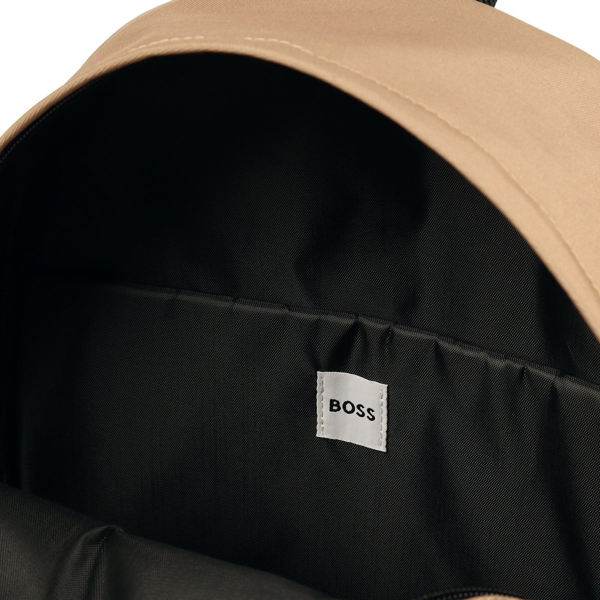 This BOSS backpack is essential for carrying your personal items with style & comfort. It includes a tablet pocket inside, & the back & straps interior are padded with mesh. Dimensions: approximately 11.8 x 15.7 x 4.7 inches.