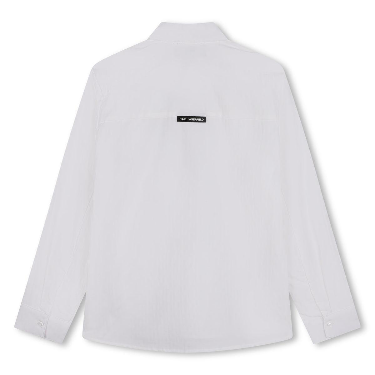 This KARL LAGERFELD KIDS long-sleeved shirt can be worn with a suit for a special occasion. A tag with the logo is sewn onto the back. This design is made of 100% cotton poplin.