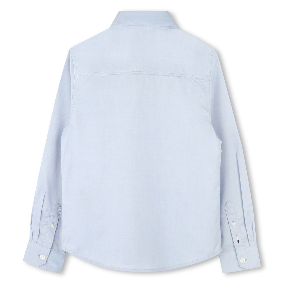 This BOSS straight-cut shirt is sure to complement any elegant look. The tone-on-tone logo embroidered on the chest is textured, & their iconic stripe embroidery embellishes the right cuff. This design is made from cotton.