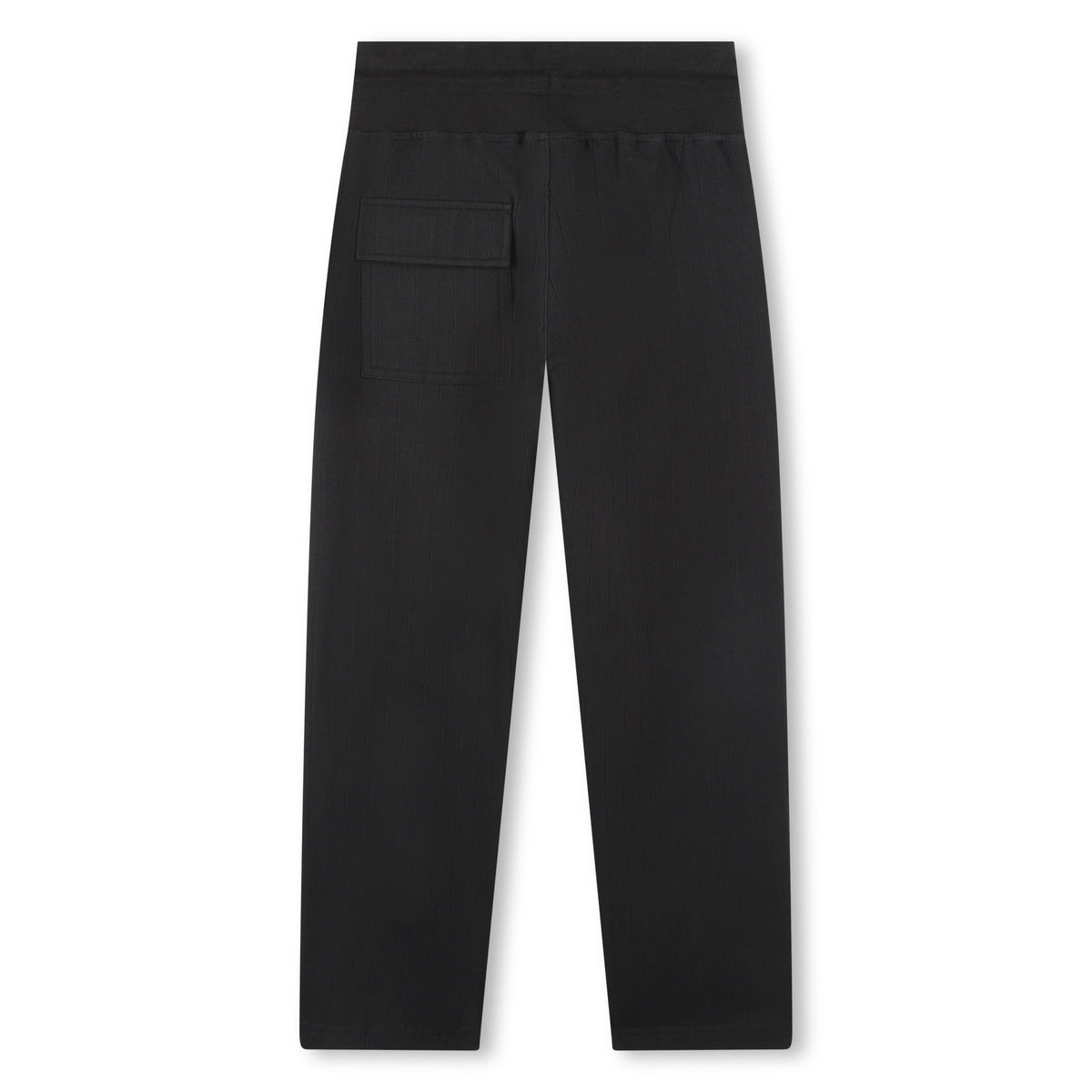These DKNY straight trousers are perfect for everyday wear. They are made from textured figured fabric which creates a tone-on-tone striped effect. The wide elasticated waist can be tightened with a drawstring. This design is made of a cotton-rich blend.
