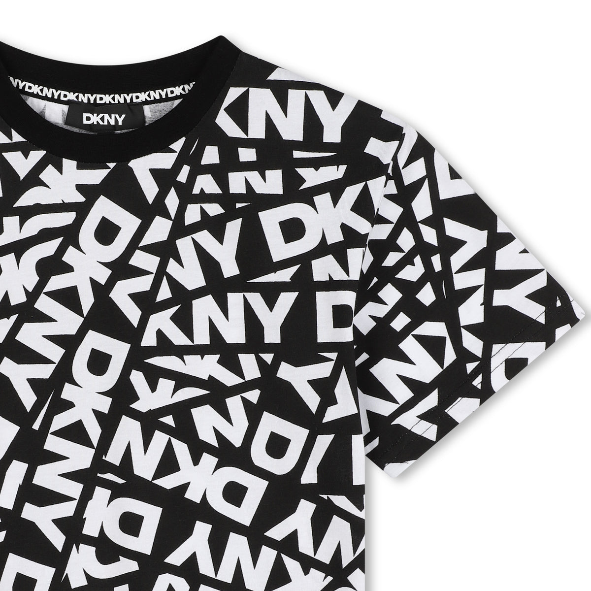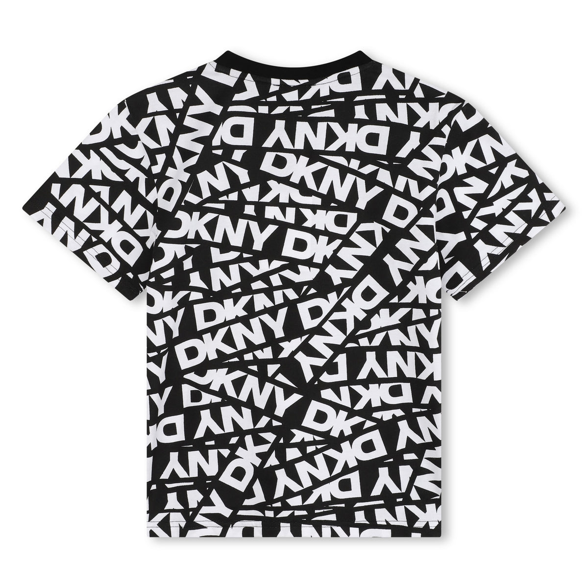 Perfect for both boys and girls, this DKNY two-tone loose-fitting T-shirt is perfect for a laidback look. It comes in a print showcasing the brand initials in the form of overlapping stripes. This design is made of 100% cotton.