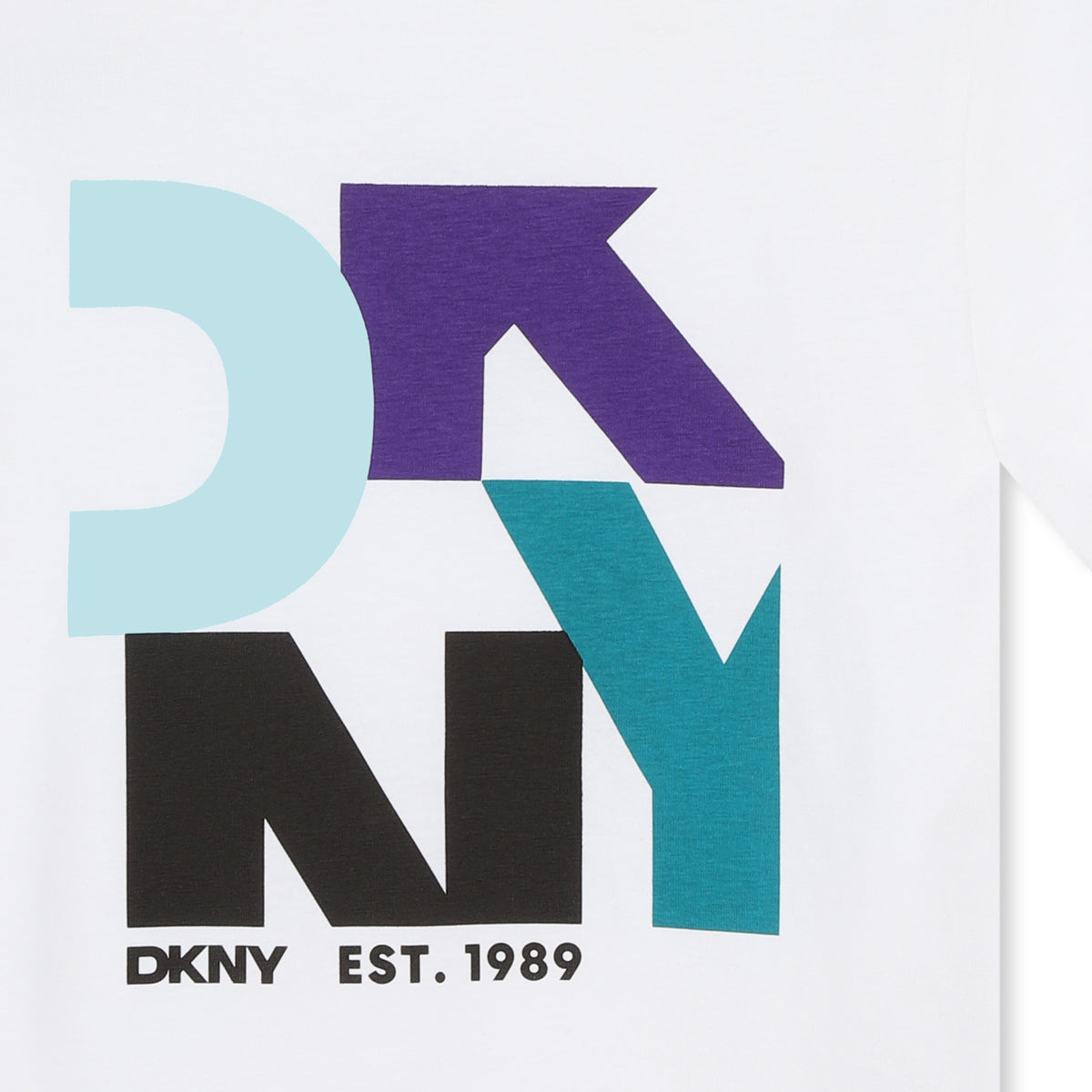 This DKNY T-shirt is a must-have for everyday outfits. It has a round neck and short sleeves, and a contrasting logo print inspired by the adult collection appears on the front. This design is made of organic cotton.