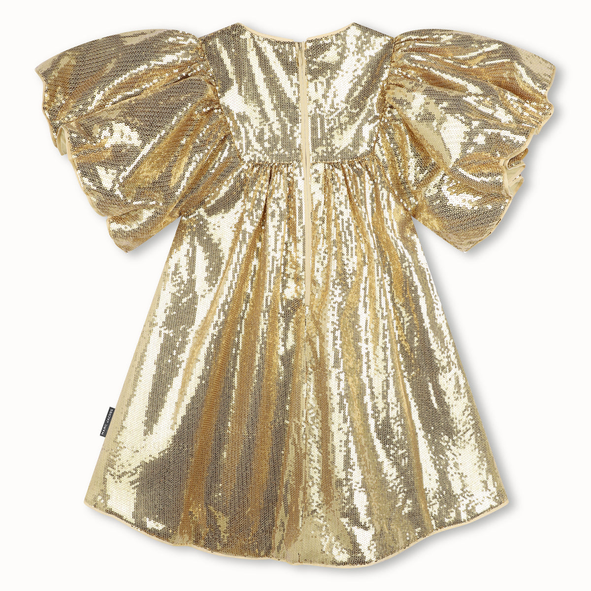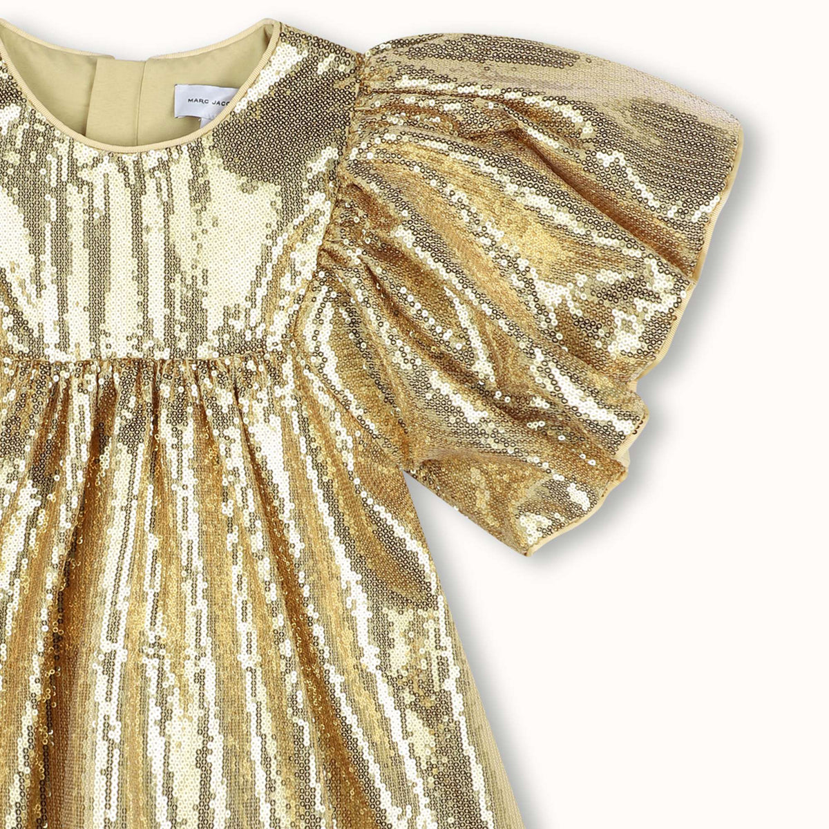 This MARC JACOBS dress covered in metallic sequins is perfect for special occasions. It comes in a flared cut with puff sleeves and a round neck. It fastens with a zip at the back. The taffeta lining is gentle next to the skin.