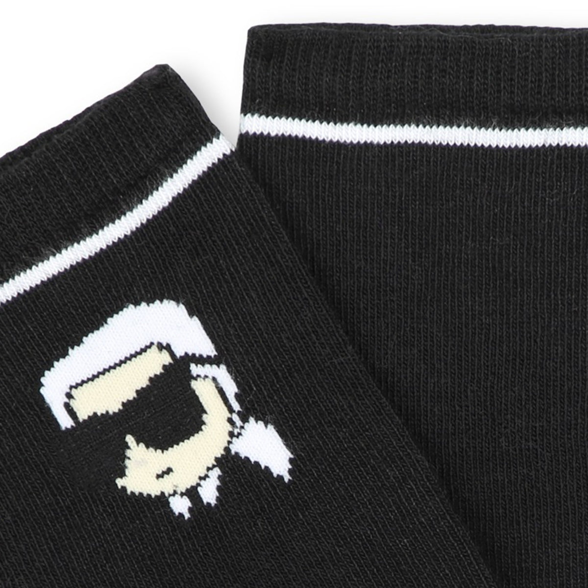 This set of 2 pairs of KARL LAGERFELD KIDS socks make an elegant finishing touch to any outfit. They are made of cotton and polyamide highlighted with stripes and ribbed finishes. The KARL and CHOUPETTE jacquard motifs complete the design.
